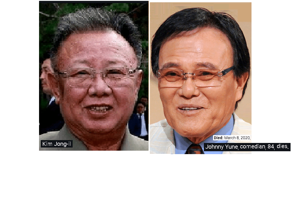 May 15, 2020May 17, 2020 Kim Jong-il = Johnny Yune, Korean-American comedian & actor ….. Exposed here 1st! Share this: Share on X (Opens in new window) X Share on Facebook (Opens in new window) Facebook Like Loading... Related