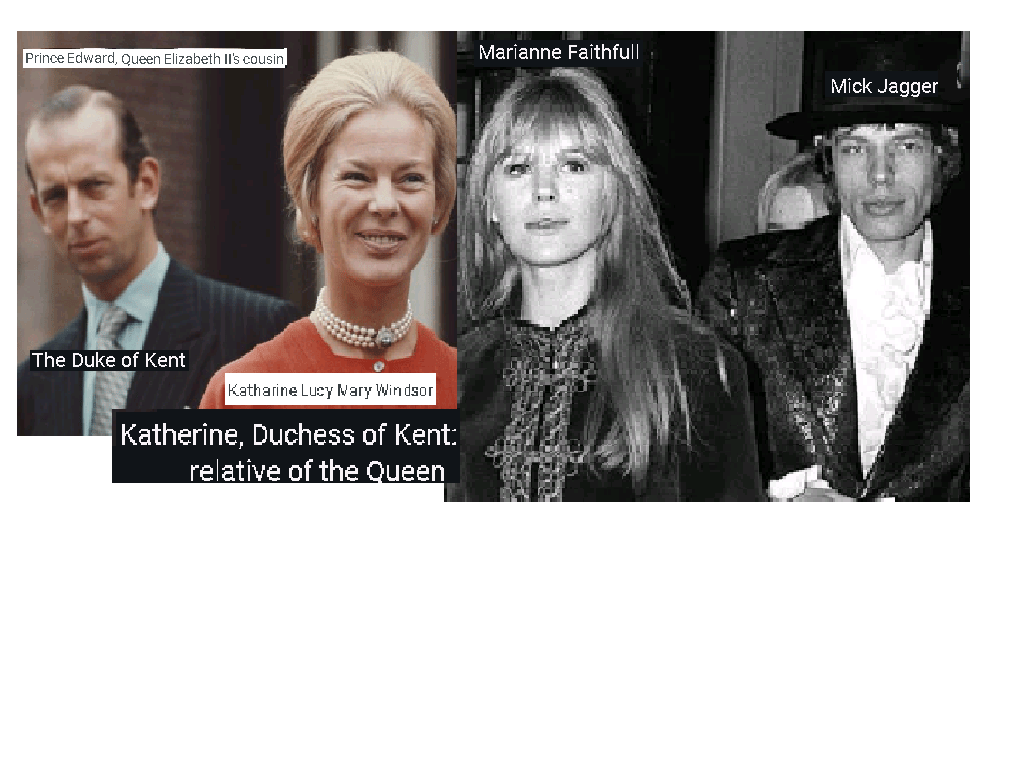 June 2, 2020 singer MICK JAGGER = PRINCE EDWARD, Duke of Kent, Queen Elizabeth’s 1st cousin ………… Edward’s wife, Katherine = Mick Jagger’s girl, Marianne Faithful ……. Exposed here 1st! Share this: Share on X (Opens in new window) X Share on Facebook (Opens in new window) Facebook Like Loading... Related