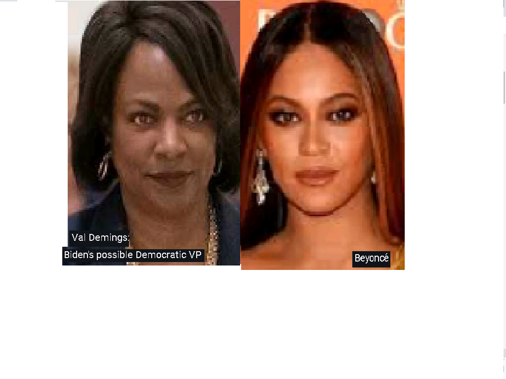 June 21, 2020June 21, 2020 Joe Biden’s possible vice presidential running mate VAL DEMINIGS = BEYONCE, singer ………………. Exposed here 1st! Share this: Click to share on X (Opens in new window) X Click to share on Facebook (Opens in new window) Facebook Like Loading... Related