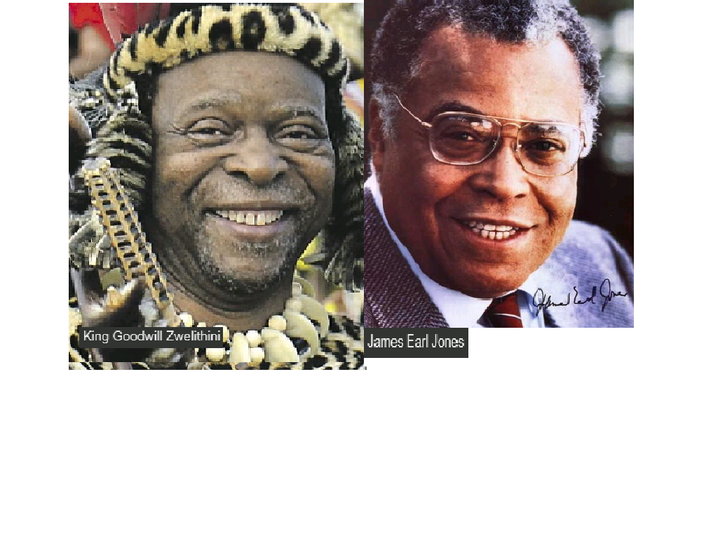 July 19, 2020 Zulu King Goodwill Zwelithini = James Earl Jones, American actor ……… Exposed here 1st! Share this: Share on X (Opens in new window) X Share on Facebook (Opens in new window) Facebook Like Loading... Related