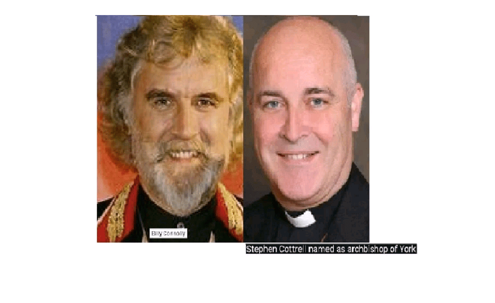 July 28, 2020July 29, 2020 The new Archbishop of York, Stephen Cottrell = Billy Connolly (Sir William Connolly) Scottish stand-up comedian ….. Exposed here 1st! Share this: Share on X (Opens in new window) X Share on Facebook (Opens in new window) Facebook Like Loading... Related