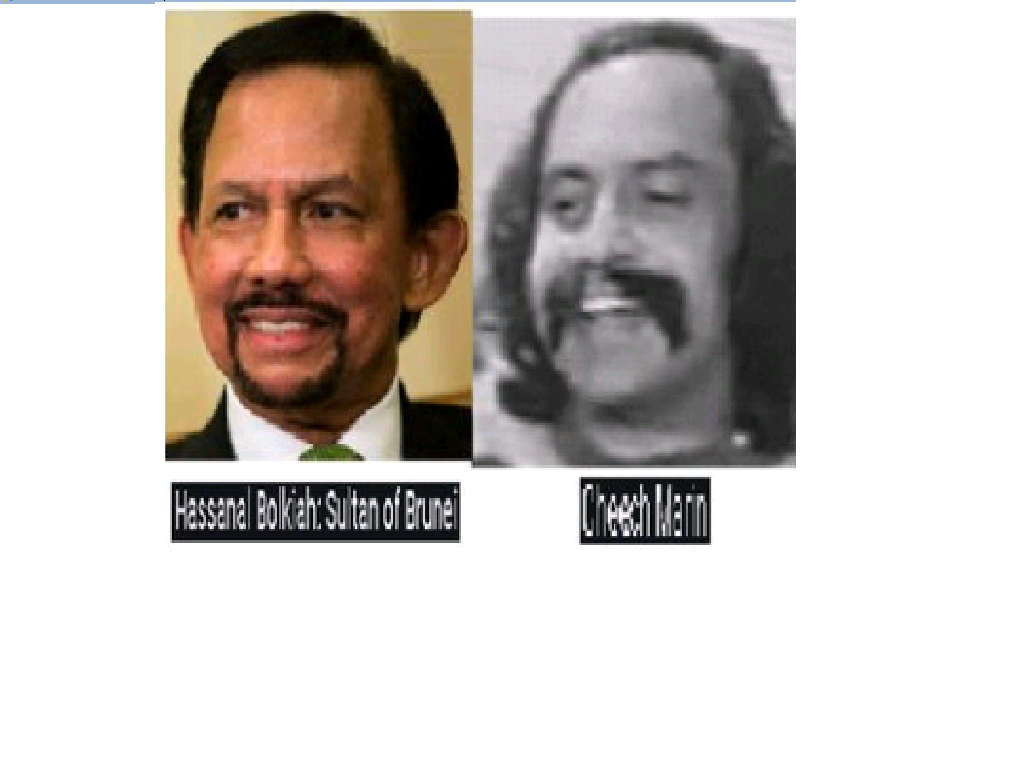 September 16, 2020 The Sultan of Brunei = Cheech Marin, of the comedy team ‘Cheech and Chong’ ….. Exposed here 1st! Share this: Share on X (Opens in new window) X Share on Facebook (Opens in new window) Facebook Like Loading... Related