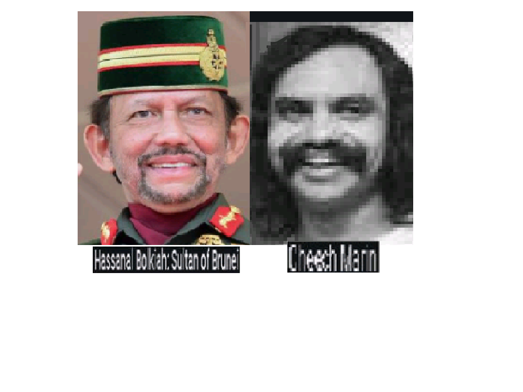 September 17, 2020 The Sultan of Brunei = Cheech Marin, of the ‘Cheech and Chong’ comedy team …… Exposed here 1st! Share this: Share on X (Opens in new window) X Share on Facebook (Opens in new window) Facebook Like Loading... Related