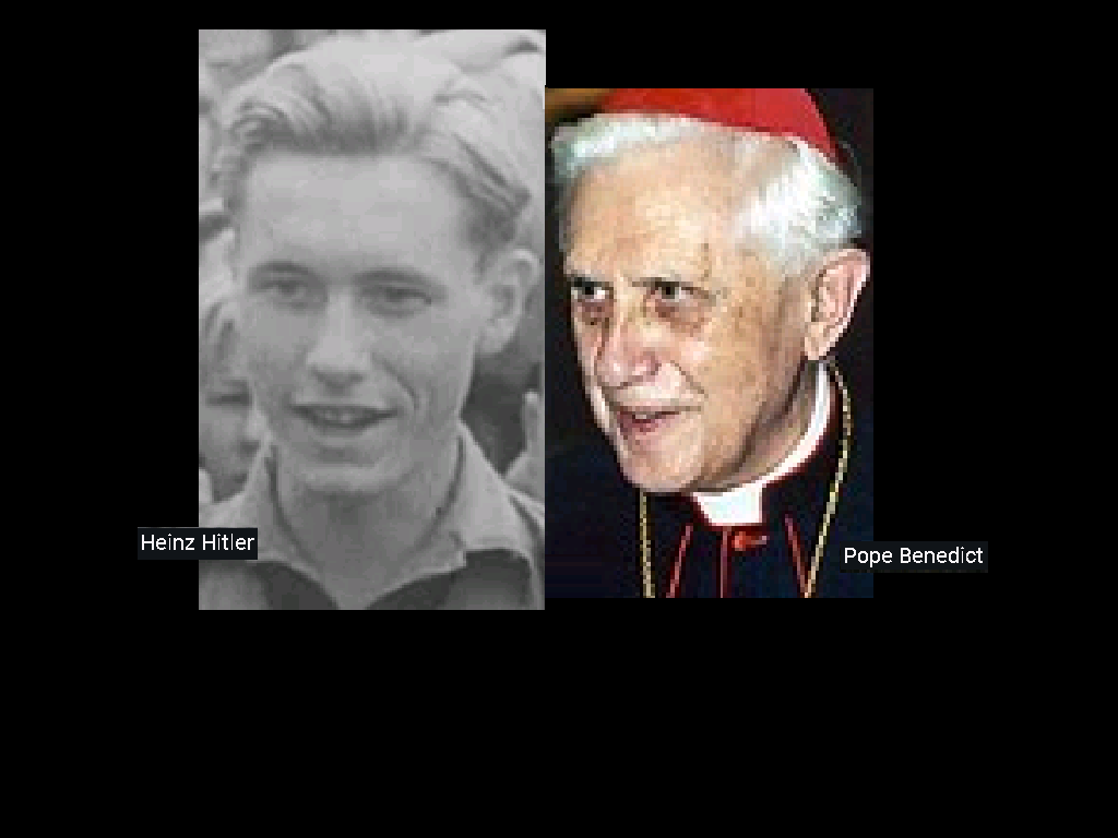 October 11, 2020October 11, 2020 Adolph Hitler’s nephew, Heinz Hitler = Pope Benedict … Exposed here 1st! Share this: Share on X (Opens in new window) X Share on Facebook (Opens in new window) Facebook Like Loading... Related