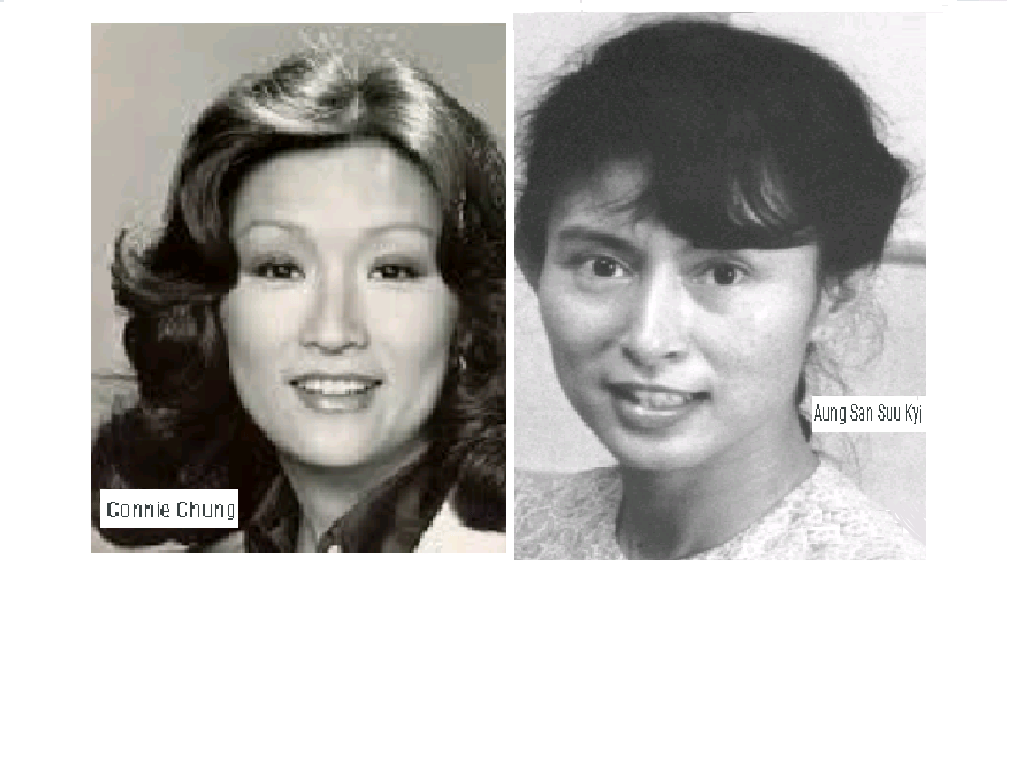 November 7, 2020 Connie Chung, American TV personality = Aung San Suu Kyi, leader of Myamar accused of genocide by the Hague World Court …. Exposed here 1st! Share this: Share on X (Opens in new window) X Share on Facebook (Opens in new window) Facebook Like Loading... Related