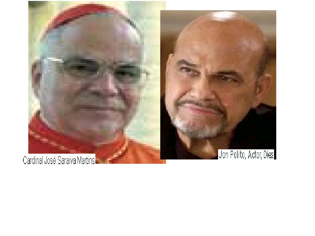December 8, 2020December 11, 2020 Catholic CARDINAL, JOSE SARAIVA MARITINS of Portugal = American movie & TV actor, JON POLITO … Exposed here 1st Share this: Share on X (Opens in new window) X Share on Facebook (Opens in new window) Facebook Like Loading... Related