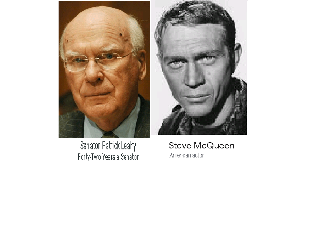 December 17, 2020 U.S. SENATOR PATRICK LEAHY = STEVE MCQUEEN, NOT-SO-DEAD MOVIE STAR. EXPOSED HERE 1ST! Share this: Share on X (Opens in new window) X Share on Facebook (Opens in new window) Facebook Like Loading... Related