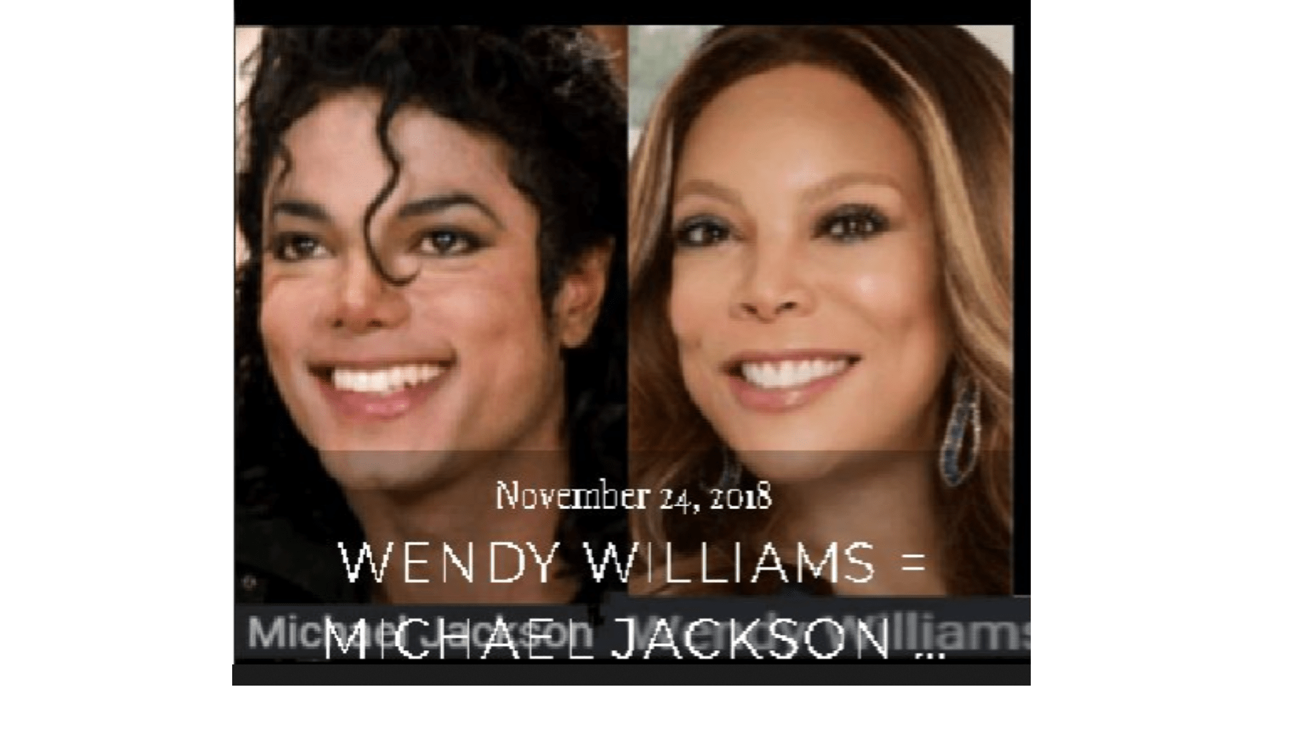 June 10, 2021 TV HOST, WENDY WILLIAMS = MICHAEL JACKSON, NOT-SO DEAD SINGER ….. EXPOSED HERE 1ST! Share this: Share on X (Opens in new window) X Share on Facebook (Opens in new window) Facebook Like Loading... Related