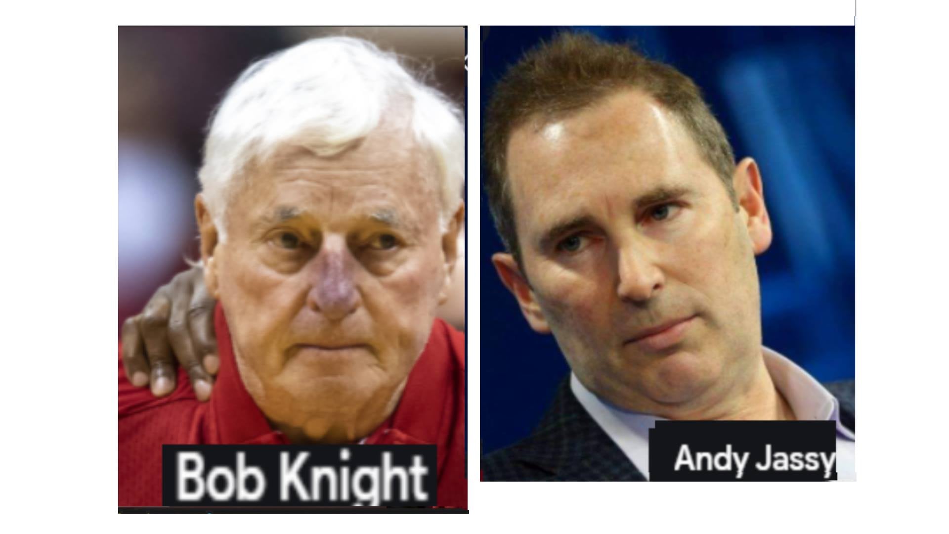 July 10, 2021 The new CEO of Amazon, ANDY JASSY = BOBBY KNIGHT, frm. basketball coach got fired throwing a chair. Exposed here 1st! Share this: Share on X (Opens in new window) X Share on Facebook (Opens in new window) Facebook Like Loading... Related