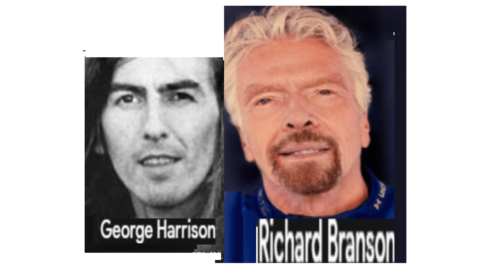 July 13, 2021 Sir Richard Branson, of Virgin Airlines = George Harrison, of the Beatles …… Exposed here 1st! Share this: Share on X (Opens in new window) X Share on Facebook (Opens in new window) Facebook Like Loading... Related
