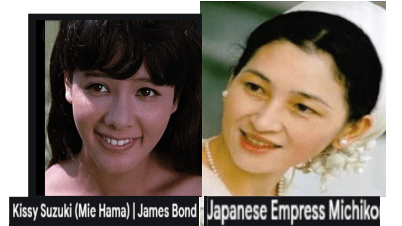 September 5, 2021 Japanese Empress Michiko = Kissy Suzuki, actress and James Bond girl ………. Exposed here 1st! Share this: Share on X (Opens in new window) X Share on Facebook (Opens in new window) Facebook Like Loading... Related