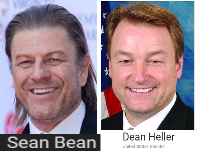 November 4, 2021December 20, 2021 Fmr. U.S. Senator Dean Heller = Sean Bean, actor in “Game of Thrones” TV series …………… EXPOSED HERE 1ST! Share this: Share on X (Opens in new window) X Share on Facebook (Opens in new window) Facebook Like Loading... Related
