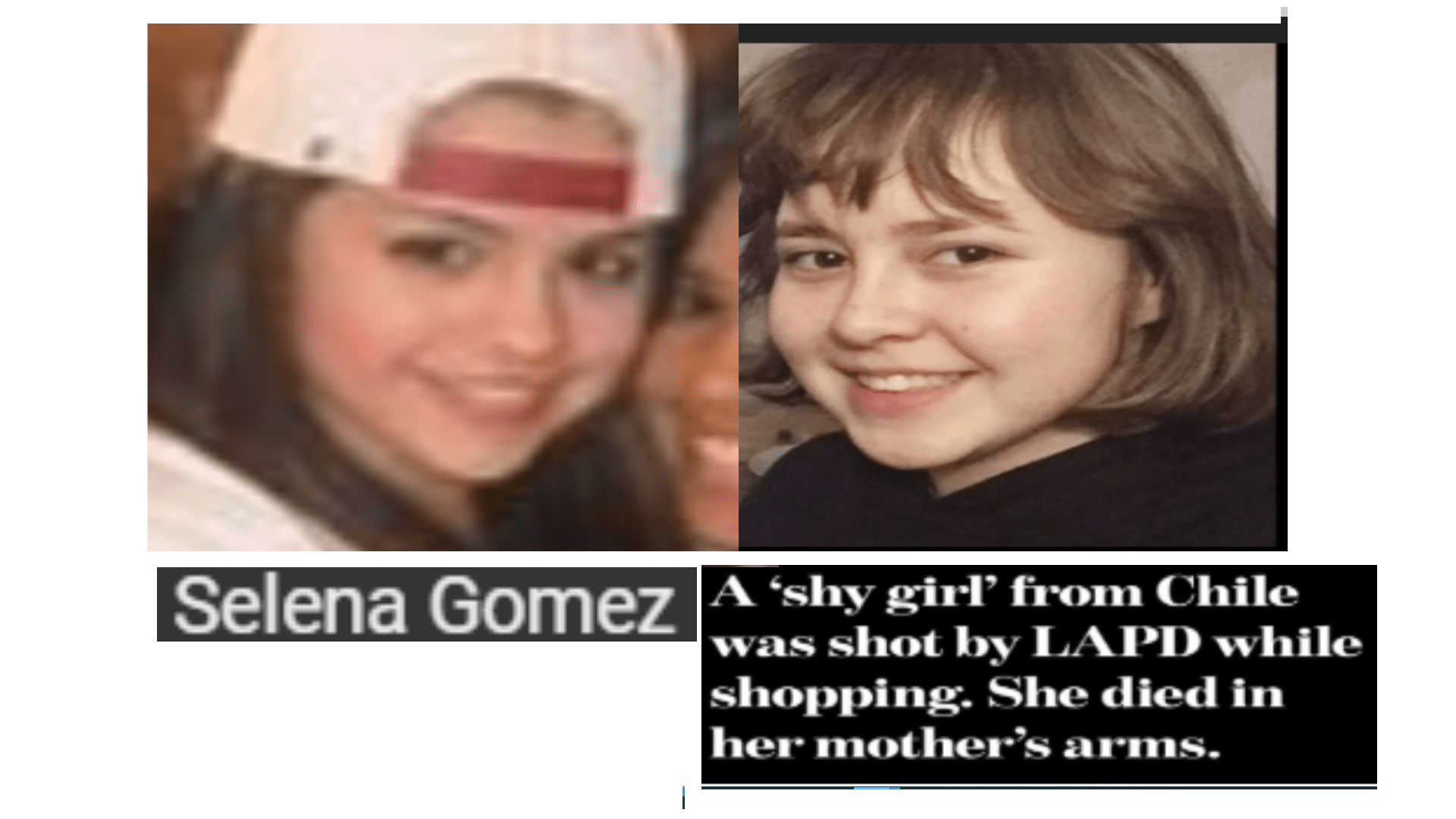 December 29, 2021 Singer, SELENA GOMEZ = VALENTINA ORELLANA-PERALTA ………. Valentina Orellana-Peralta: US teen shot dead by police ‘died in mother’s arms’, DEC 2021. Fake News! ….. Exposed here 1st! Share this: Share on X (Opens in new window) X Share on Facebook (Opens in new window) Facebook Like Loading... Related