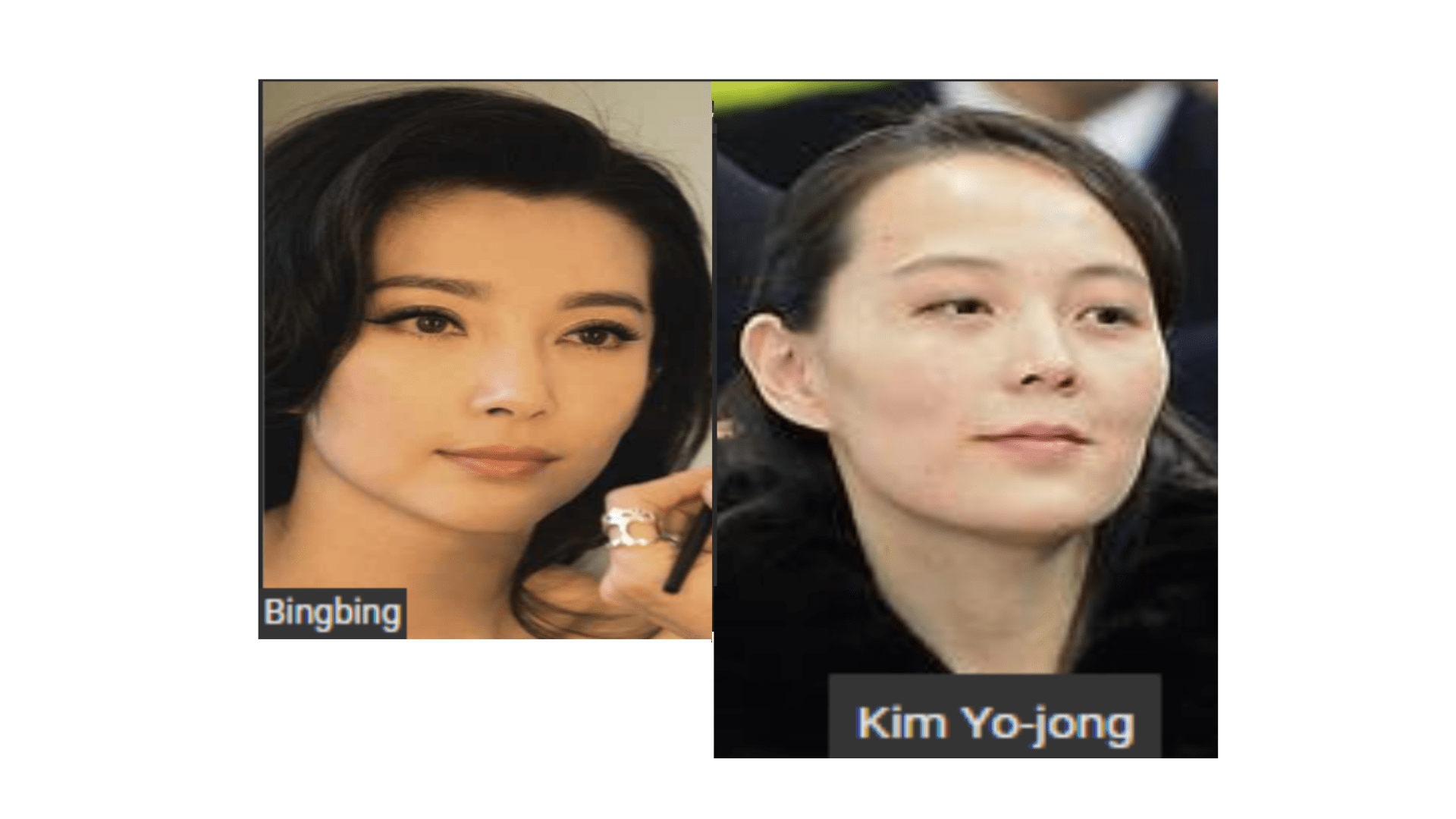 February 13, 2022February 14, 2022 KOREA LEADER KIM JONG UN’S SISTER: KIM YO JONG = ASIAN-AMERICAN ACTRESS, LI BING BING …….. EXPOSED HERE 1ST! Share this: Share on X (Opens in new window) X Share on Facebook (Opens in new window) Facebook Like Loading... Related