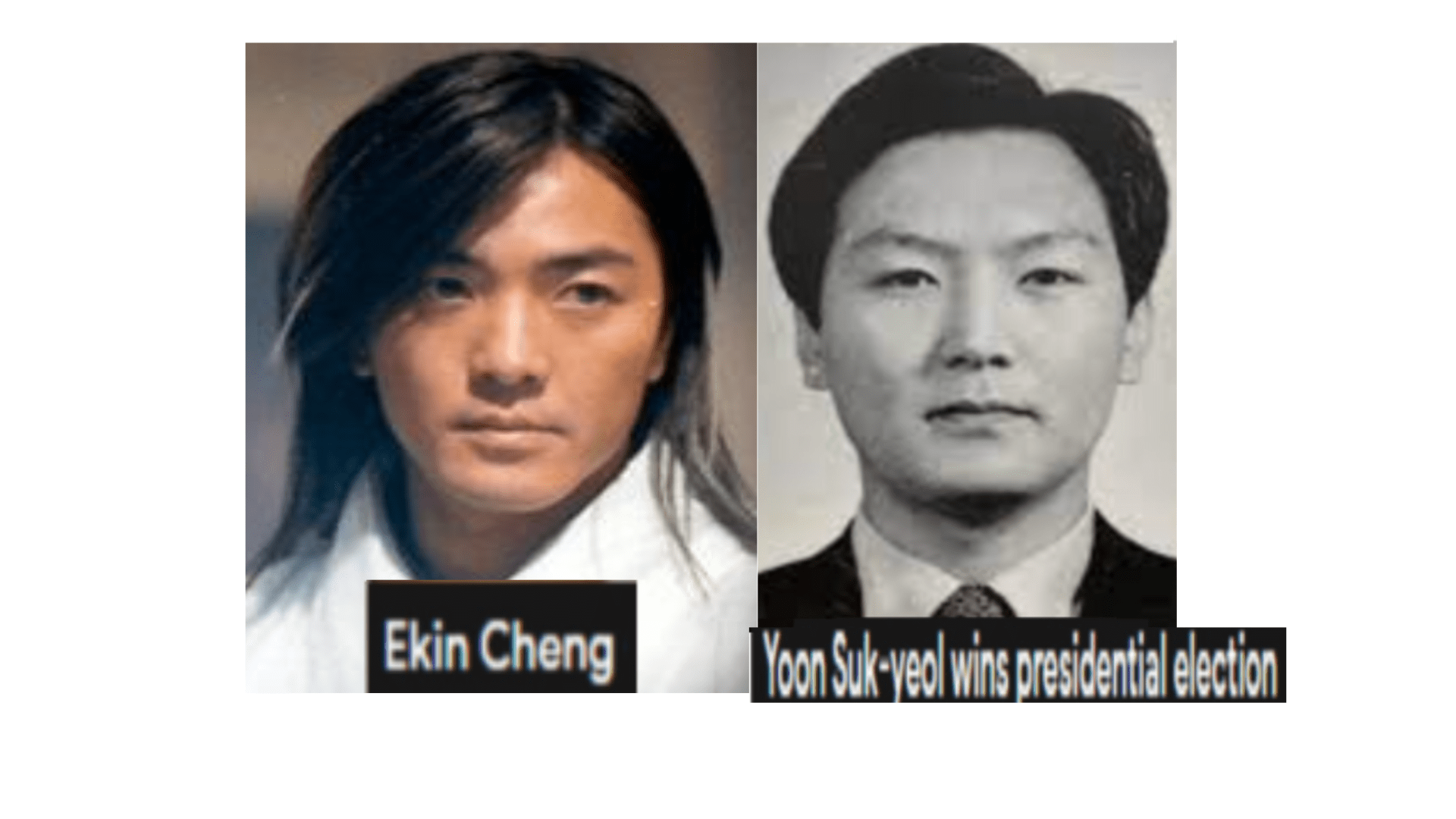 March 29, 2022 The new President of South Korea YOON SUK YEOL, age 61= ERIK CHENG, age 54, Hong Kong actor, made to look older …….. Exposed here 1st! Share this: Share on X (Opens in new window) X Share on Facebook (Opens in new window) Facebook Like Loading... Related