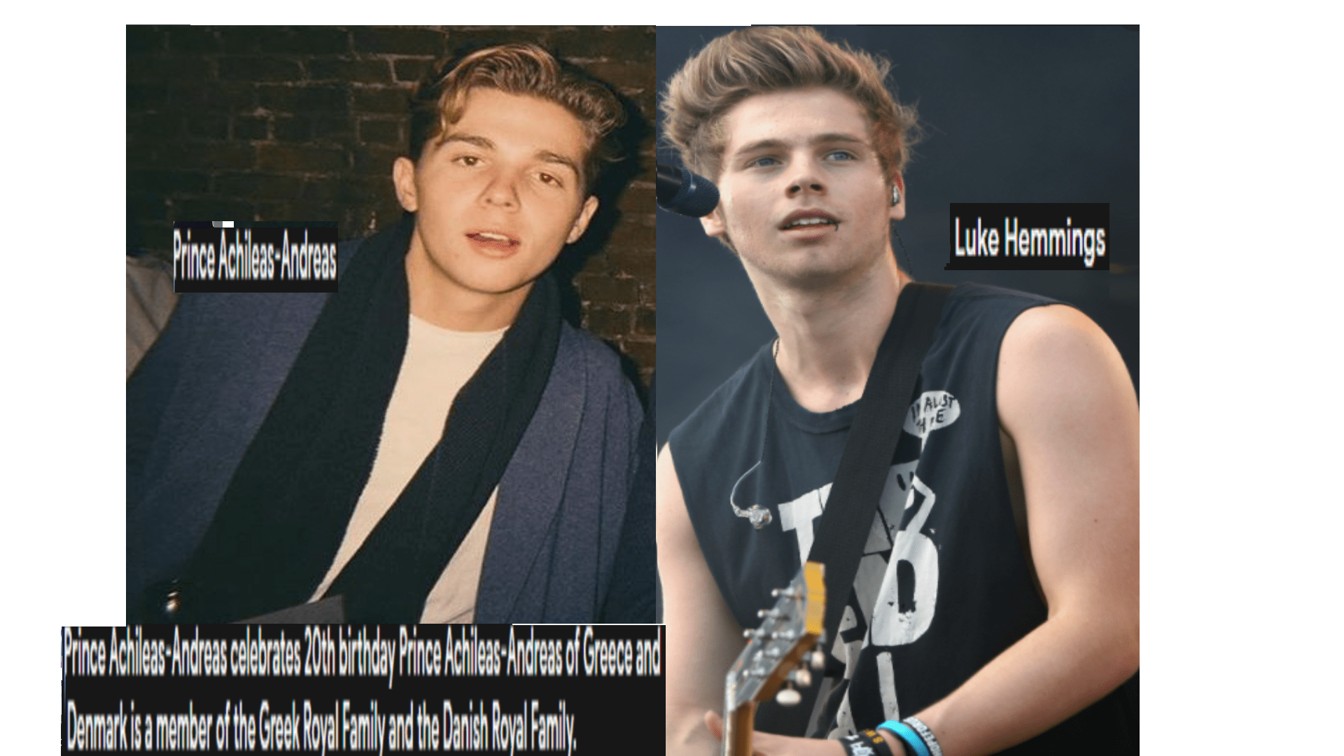 April 3, 2022 Singer LUKE HEMMINGS, of the 5 Seconds of Summer band = PRINCE ACHILEAS-ANDREAS, of Greece and Denmark …… Exposed here 1st! Share this: Share on X (Opens in new window) X Share on Facebook (Opens in new window) Facebook Like Loading... Related