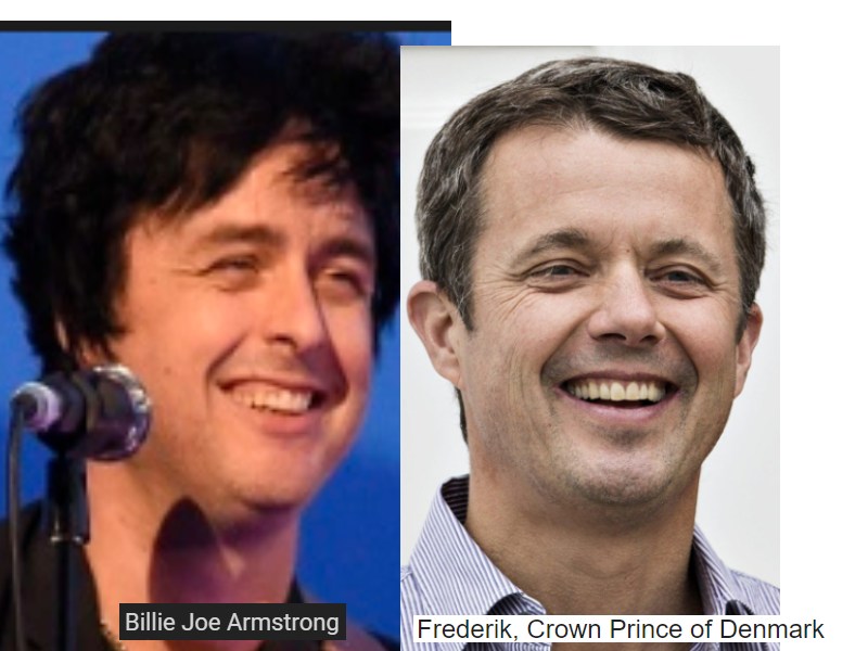 April 19, 2022 CROWN PRINCE FREDERIK OF DENMARK = BILLY JOE ARMSTRONG OF THE BAND “GREENDAY” … EXPOSED HERE 1ST! Share this: Share on X (Opens in new window) X Share on Facebook (Opens in new window) Facebook Like Loading... Related