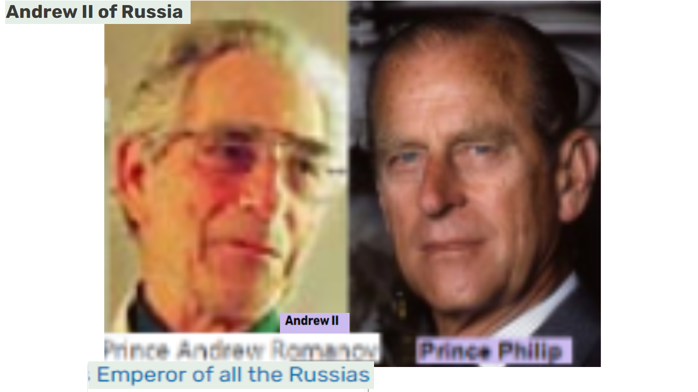 August 14, 2022August 15, 2022 THE EMPEROR OF RUSSIA, ANDREW II = PRINCE PHILIP OF BRITAIN, THE HUSBAND OF QUEEN ELIZABETH II, THE ROYAL RULER OF THE BRITISH EMPIRE ……………. BOTH ANDREW II (ANDREW ROMANOV) AND PRINCE PHILIP DIED IN 2021……….. EXPOSED HERE 1ST! Share this: Share on X (Opens in new window) X Share on Facebook (Opens in new window) Facebook Like Loading... Related