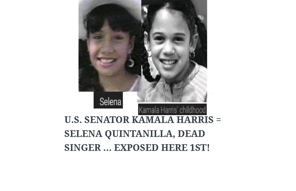 August 14, 2023 U.S. VICE PRESIDENT, KAMALA HARRIS = NOT-SO-DEAD SINGER, SELENA QUINTANILLA ………………… EXPOSED HERE 1ST! Share this: Click to share on X (Opens in new window) X Click to share on Facebook (Opens in new window) Facebook Like Loading... Related