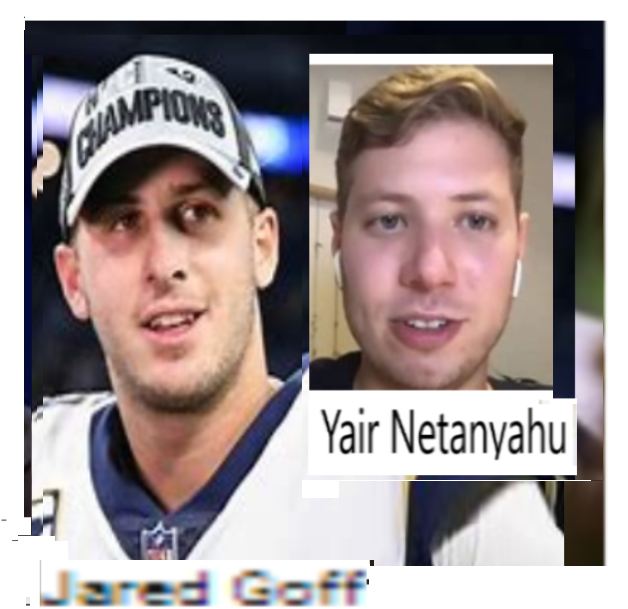 January 21, 2024 NFL Quarterback, JARED GOFF = YAIR NETANYAHU, son of Benjamin Netanyahu, Prime Minister of Israel ……………………………………………. exposed here 1st! Share this: Click to share on X (Opens in new window) X Click to share on Facebook (Opens in new window) Facebook Like Loading... Related