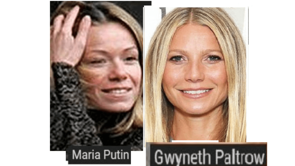 August 12, 2024August 14, 2024 actress Gwyneth Paltrow = Maria Putin, Russian Pres. Vladimir Putin’s daughter ………………………. exposed here 1st! Share this: Click to share on X (Opens in new window) X Click to share on Facebook (Opens in new window) Facebook Like Loading... Related