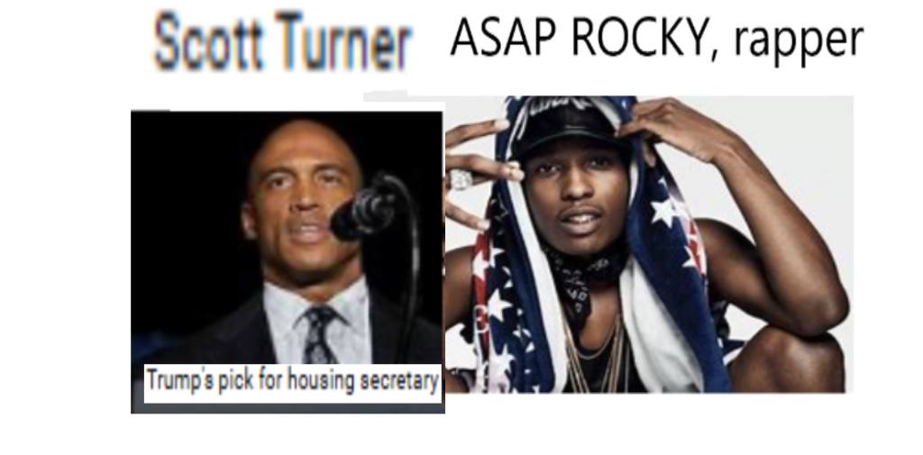 December 8, 2024 TRUMP’S PICK FOR U.S. HOUSING SECRETARY, SCOTT TURNER = ASAP ROCKY, RAPPER …………………………………………….. EXPOSED HERE 1ST! Shared with Public U.S. Housing Secretary = Rapper Share this: Share on X (Opens in new window) X Share on Facebook (Opens in new window) Facebook Like Loading... Related
