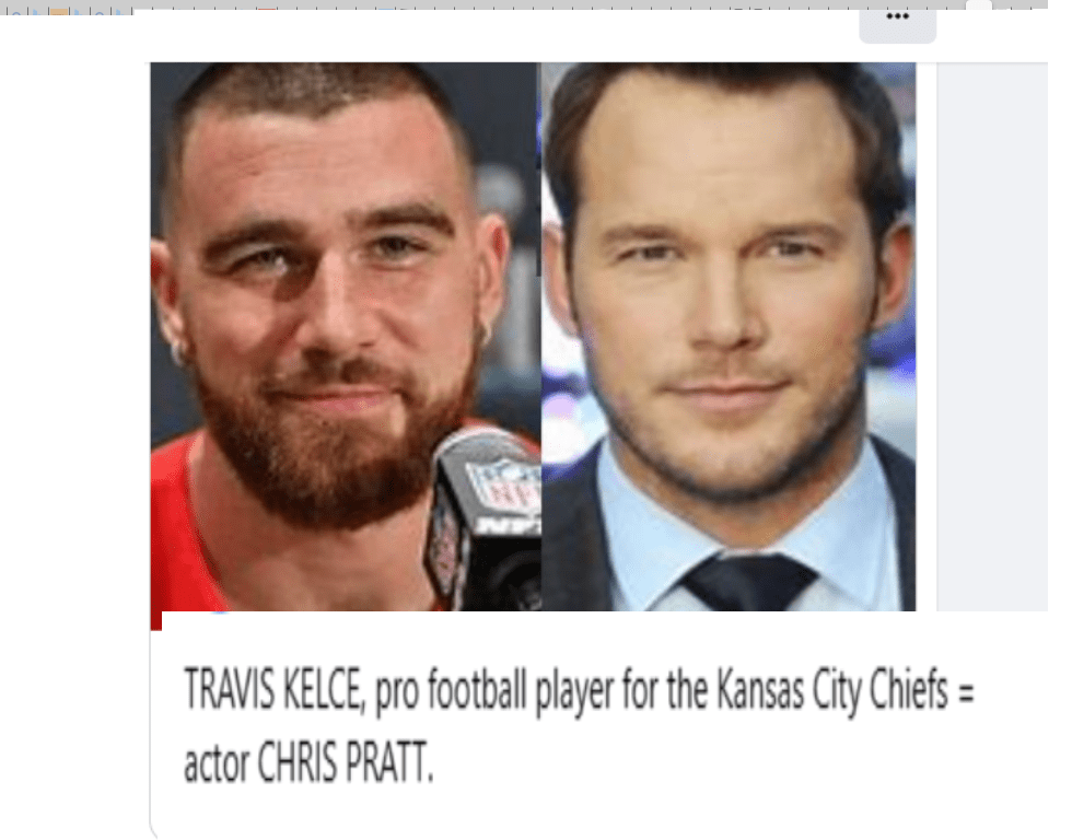 TRAVIS KELCE, pro football player for the Kansas City Chiefs = actor CHRIS PRATT ………. exposed here !st