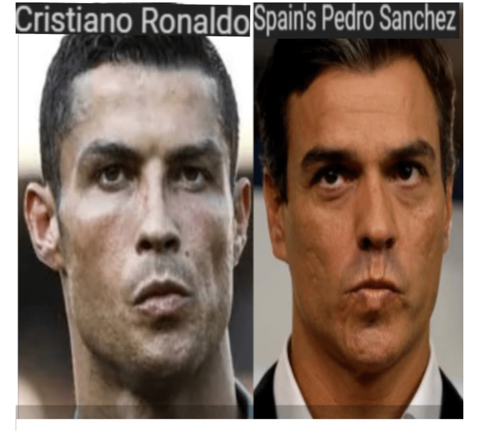 Prime Minister of Spain, PEDRO SANCHEZ = CRISTIANO RONALDO, soccer player ……………………………………………. Exposed here 1st!