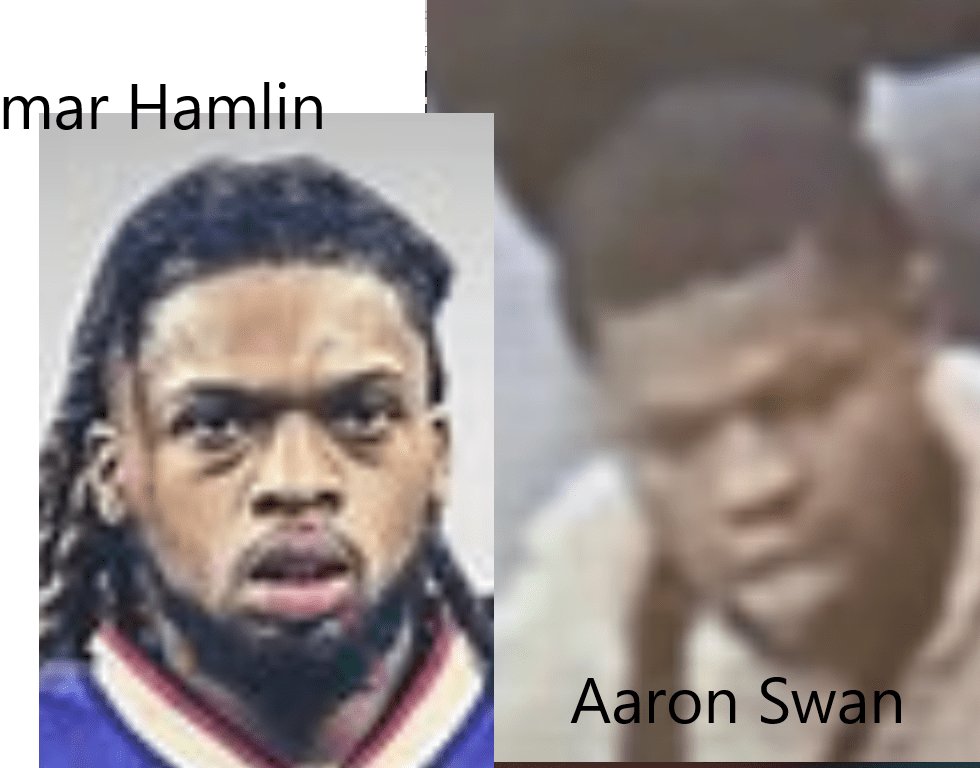 nfl player: damar hamlin = aaron swan, cop-killer/gunman ……………………….. BOTH MEN ARE FROM PITTSBURGH, PENNSYLVANIA USA …………….. EXPOSED HERE 1ST! BIG HOAX TO TAKE AWAY THE CITIZENS’ GUNS.