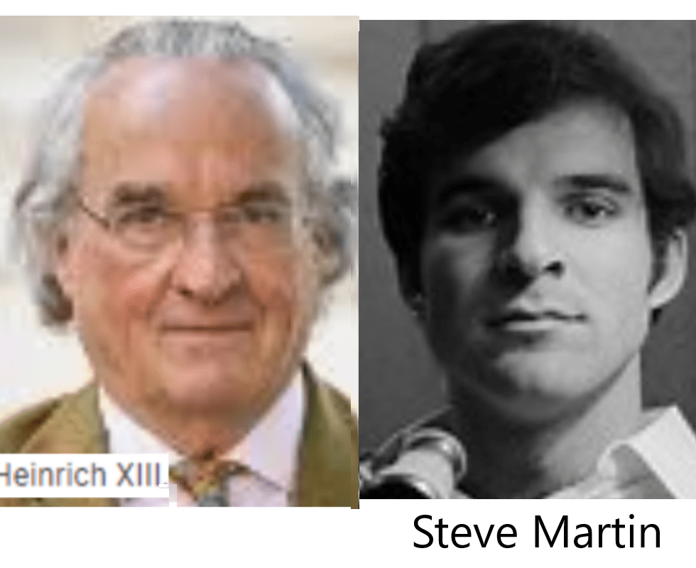 THE LEADER OF THE ATTEMPTED GERMAN GOVT. COUP/OVERTHROW, PRINCE HEINRICH XIII = AMERICAN COMEDIAN, STEVE MARTIN …………. exposed here 1st!