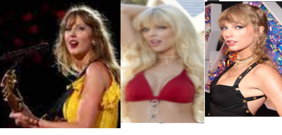 Taylor Swift (side photos) = Jana Jordan, porn star (middle photo).