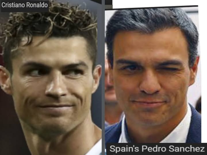 Cristiano Ronaldo, soccer great = Pedro Sanchez, Prime minister of Spain ……………………………….. exposed here 1st!