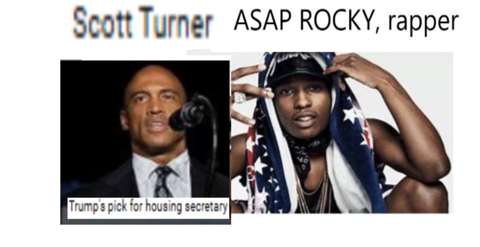 TRUMP’S PICK FOR U.S. HOUSING SECRETARY, SCOTT TURNER = ASAP ROCKY, RAPPER …………………………………………….. EXPOSED HERE 1ST!