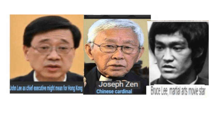 john lee, chief executive of Hong Kong = Catholic cardinal joseph zen of hong kong = not-so-dead martial arts movie star, bruce lee …………………………………. exposed here 1st!