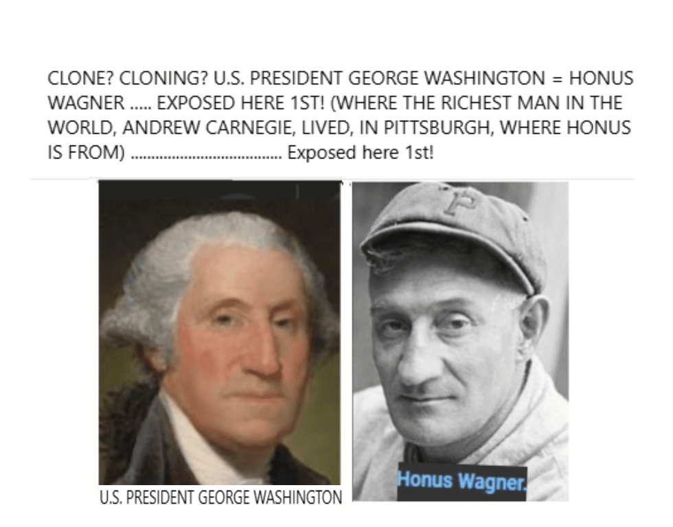 u.s. PRES. GEORGE WASHINGTON, CLONE = HONUS WAGNER, PITTSBURGH BASEBALL LEGEND EXPOSED HERE 1ST!